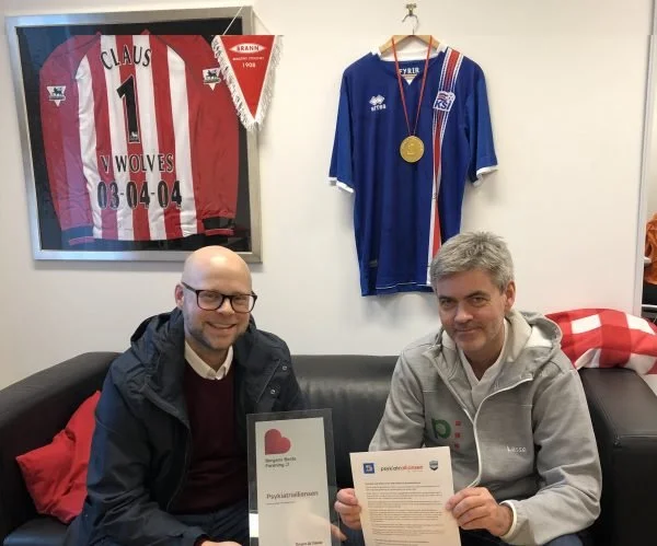 To fornøyde karer: Daglig leder i Sædalen IL, Pål Hafstad Thorsen, og daglig leder i Psykiatrialliansen, Lasse Hjelle.